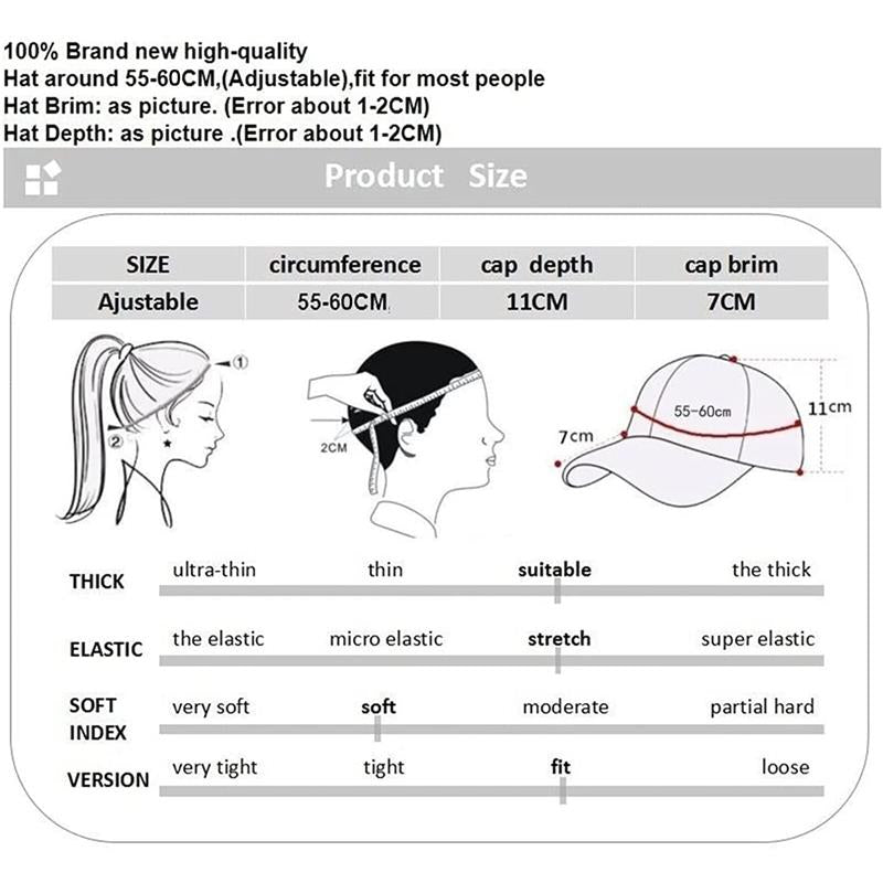 Comfortable fit for head circumference 21.7-24.4 inches, brim 2.8 inches, height 4.3 inches.